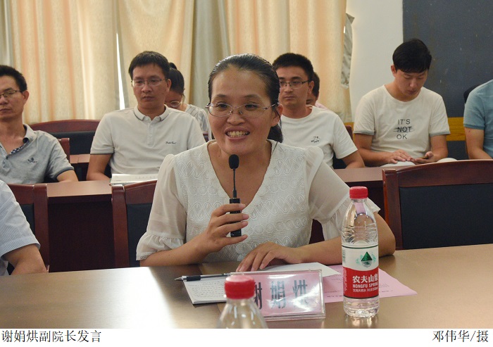谢娟烘副院长与党总支苏庚华副书记表示,将按照上级领导的要求,带领全院教职工统一思想,齐心协力解决在工作过程中遇到的各种困难,认真做好全院师生的服务工作。谢娟烘副院长号召全体的教职工在一个大家庭里,心往一处想,劲往一处使,为学科建设、专业建设贡献力量,以饱满的状态迎接本科教学评估。
