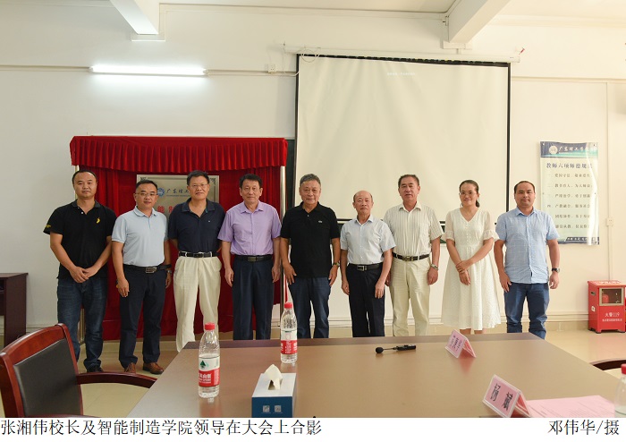 张湘伟校长致辞并作重要指示。张校长首先对智能制造学院的成立表示热烈的祝贺。他指出,智能制造学院的成立是紧跟粤港澳大湾区发展步伐的战略举措,是为更好地实施学科专业建设、资源整合和管理优化的创新部署,智能制造学院要发挥在学校的示范引领作用,努力打造智能制造产业发展的排头兵、应用型人才培养的新引擎。张湘伟校长强调,智能制造学院的领导班子要加强团结、加快融合,做好服务和学科专业建设的指导工作,同心同德推进学院又好又快发展。他希望智能制造学院成立后能够充分利用学校设备和师资资源,以实验为主,开发出丰富多彩的教学课程,进一步优化人才培养方案,取得新发展、新进步、新成就。