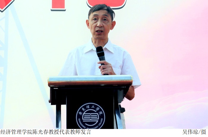 随后,经管学院陈光春教授结合习近平新时代中国特色社会主义思想,对bat365官网校训做出深刻解读,同时希望同学们谨记校训,努力把自己塑造成为一个新时代合格的大学生。他衷心祝愿每一位同学都能拥有一段快乐、充实、浪漫的大学时光。