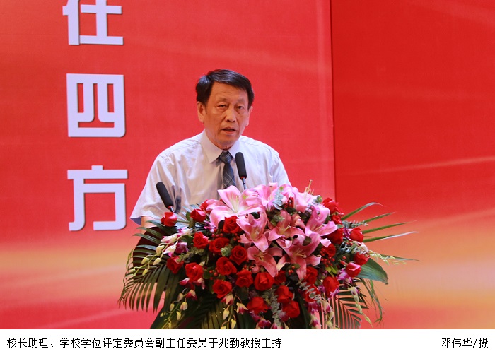 张湘伟校长在致辞中代表学校祝贺同学们圆满完成学业。他寄语全体毕业生五点希望,一是注重提升自身的道德修养;二是树立创新精神,不断学习;三是始终坚持积极向上,勇于担当;四是修炼格局,理性选择;五是志存高远,矢志坚守。他祝福毕业生在职场中乘风破浪,不断历练、成长,不断展示自己的才华与人格魅力,为国家为社会做出应有的贡献。