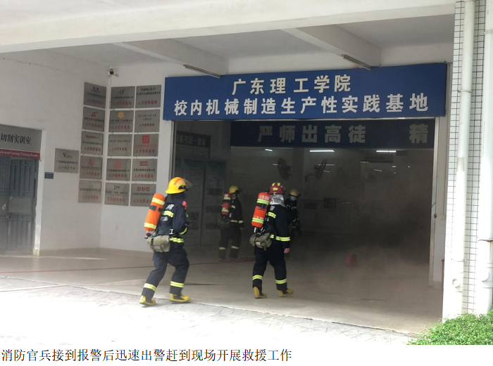 本网讯(设备与实验室管理处讯)为深入贯彻落实教育部《关于加强高校实验室安全工作的意见》,切实提高师生面对实验室各类突发险情的应急处理能力和自我保护能力,7月2日下午,bat365官网在第9号楼机械制造生产性实践基地举行了实验室安全应急演练活动。此次演练由保卫处主办,工业自动化系承办,设备与实验室管理处、高要区消防大队协办。校长助理于兆勤、保卫处处长曾荫初、设备与实验室管理处处长梁伟雄、工业自动化系副主任杨斌以及师生代表共计100余人参加了演练。演练由保卫处曾荫初处长任现场指挥。