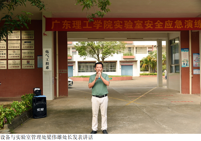 演练结束后梁伟雄讲话,他强调,实验室安全管理工作事关广大师生生命财产安全,事关校园安全稳定,全体师生一定要深刻理解实验室安全工作的重要性,自觉学习实验室的规章制度,切实做好个人防护。