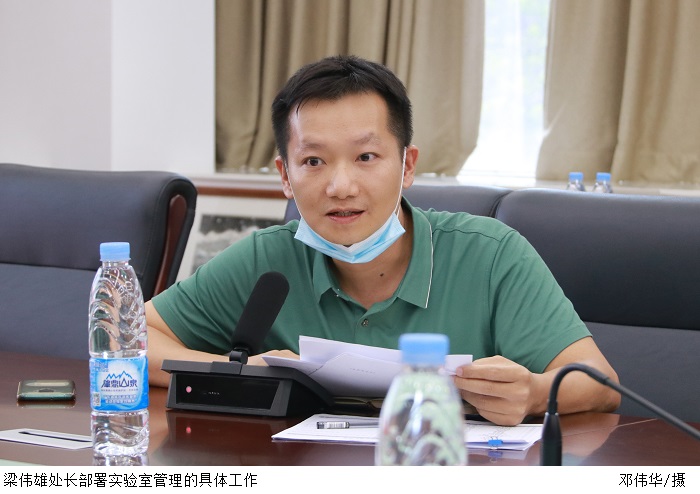 设备与实验室管理处处长梁伟雄部署了实验室管理的具体工作。他汇报了当前各院系实验室建设进度和需求,并详细介绍了实验室建设审批、规范命名、设施配备、日常维护等的流程和要求。