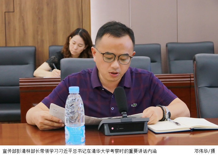 在宣传部彭清林部长的带领下,与会人员深入学习了习近平总书记在清华大学考察时的重要讲话内涵。