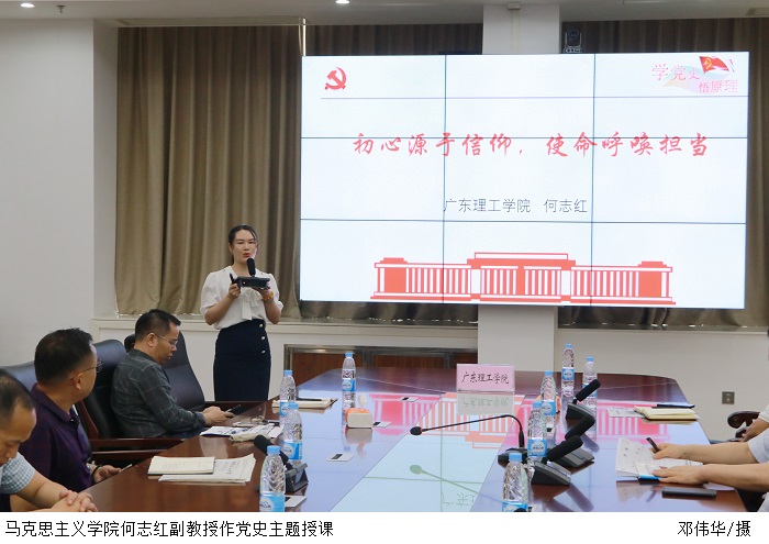 会上,肇庆市委宣讲团成员,bat365官网马克思主义学院何志红副教授为与会人员上了一堂党史学习教育课,以《初心源于信仰,使命呼唤担当》为主题,强调党史学习的重要性,生动讲述了党的发展历程、历史精神及带领中国人民取得的伟大成绩,带给人思考与启发。