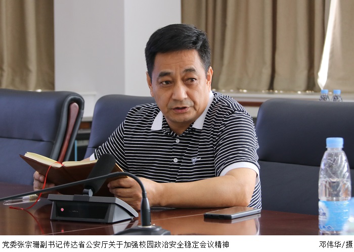 随后,党委张宗珊副书记传达省公安厅关于加强校园政治安全稳定会议精神。张东生书记强调安全无小事,bat365官网应按照省公安厅部署,做好安全保障工作,继续落实法纪、师德师风教育,进一步维护bat365官网的政治安全稳定。