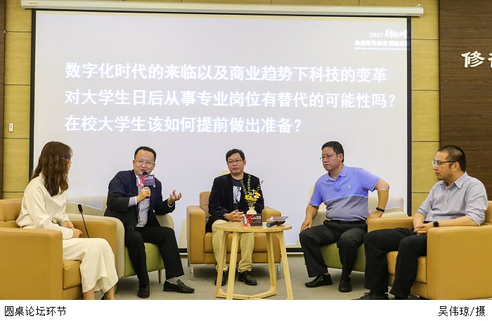 圆桌论坛环节中,嘉宾们就大学生如何提前做好就业准备、大学生创业应该具备哪些条件或素质等方面进行探讨。他们从学生角度出发,结合自身经历,鼓励学生多加学习技能,趁年轻多考一些专业技能类或思维类证书,以减少心理恐慌。也建议同学们要注重考证过程,抢占市场先机、提高受挫能力、丰富自身学识、打破陈规和提高创新意识等。
