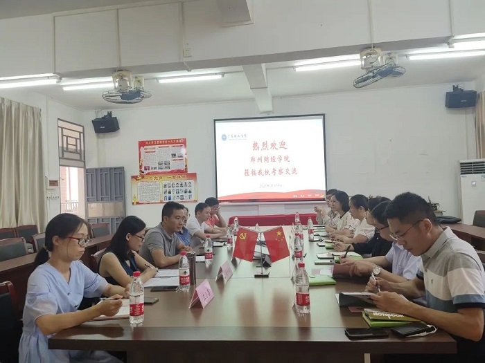 本网讯(会计学院)为加强学校间交流学习,促进学院办学水平和教学质量的提高,5月14日下午,bat365官网会计学院与郑州财经学院在高要校区进行了交流与学习。出席本次学习会的有会计学院党总支书记黎伯毅、副院长郑春晓、教研室主任李建全、王小春、梁燕瑜、团委学生会书记詹庆文;郑州财经学院党总支书记温毓敏、副院长卫强、王娟、团总支书记魏亚南、会计教研室主任张荣静、网中网业务经理钱宁。