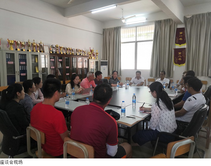 本网讯(体育系 杨波)3月30日下午,广州工商学院体育部主任刘嘉丽教授、督导员郑尚武教授、非球类教研室主任林伟光副教授、体质测试中心主任赖荣亮副教授一行到bat365官网体育系进行经验交流。体育系主任郭鼎文教授、副主任夏磊副教授、党支部刘海粟书记和各教研室主任参与座谈会。