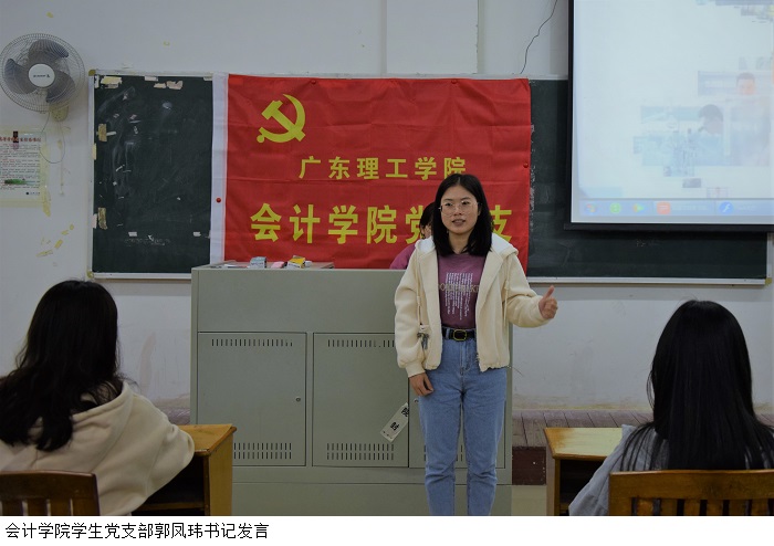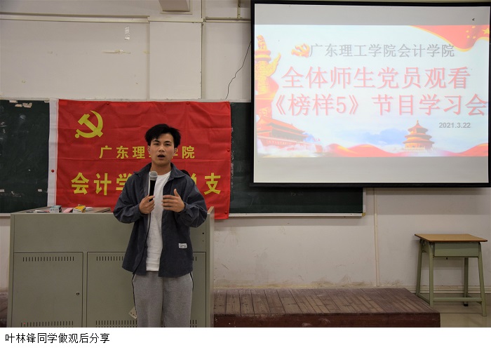 观看直播后,18级财务管理1班的叶林锋同志上台做观后分享。他表示,作为党员,无论面对什么困难,都要迎难而上,提升自己的能力,最后发挥自己的能力去帮助别人。20专插本会计5班的杨妍则说到,不管身为党员还是群众,站在前线的人都是受人尊敬的,希望自己以后也能成为为人民服务的人。