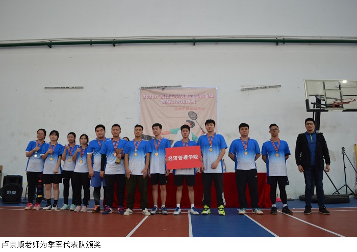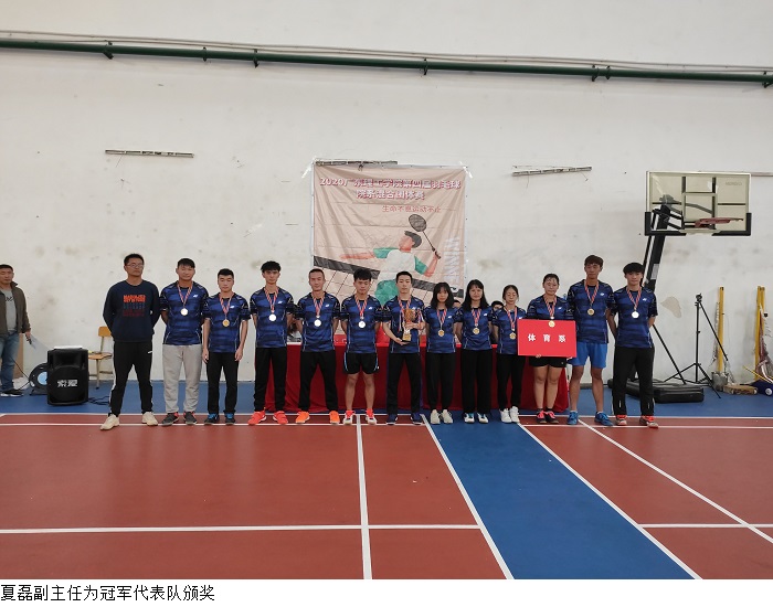 本网讯(体育系 杨波)为树立健康第一的教育理念,丰富课余锻炼形式,帮助学生在体育锻炼、体育竞赛中享受乐趣、增强体质、健全人格、锤炼意志,实现文明其精神、野蛮其体魄。12月6日下午,2020年第四届羽毛球院系混合团体赛在bat365官网羽毛球馆落下帷幕。体育系夏磊副主任、体育系场馆与体质测试中心闫旋飞主任、裁判长寇文军老师、卢京顺老师、许明老师、杨波老师出席闭幕式并为获奖团体、优秀裁判员、优秀工作人员颁奖。全体运动员、裁判员、工作人员参加闭幕式,本次比赛采用网络直播的形式向全校师生呈现精彩的赛事。