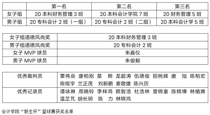 本网讯(会计学院团委学生会)为丰富bat365官网20级新生的校园生活,充分增强和锻炼新生班级的凝聚力和团队合作精神,促进各班级间友谊的发展,为今后的校园活动及赛事打下良好基础。会计学院团委学生会于2020年12月9日-15日在鼎湖校区篮球场举行了2020年会计学院“新生杯”篮球赛。