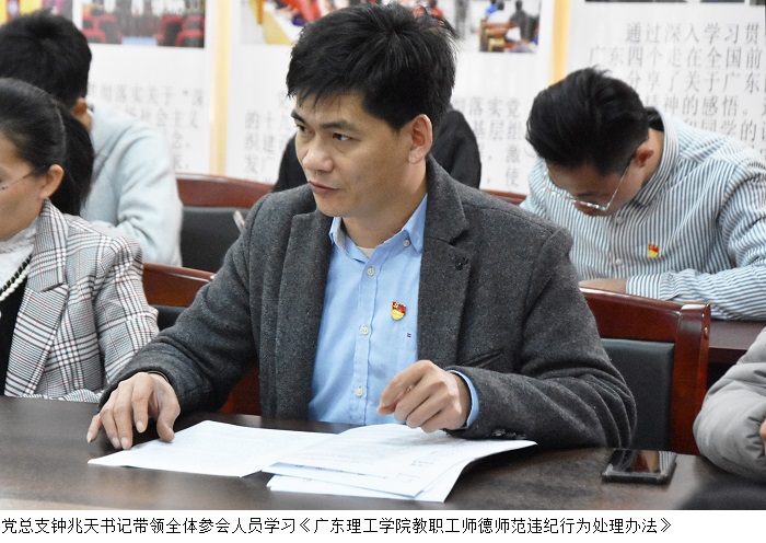 会议上,汽车工程系党总支钟兆天书记带领全体参会人员学习《bat365在线中国官网登录入口教职工师德师范违纪行为处理办法》。他强调,我系教师要认真学习文件内容,不断提高自身师德素养,注重强化育人意识。钟书记表示,只有我系全体教师共同努力,才能抓好我系师德师风建设。