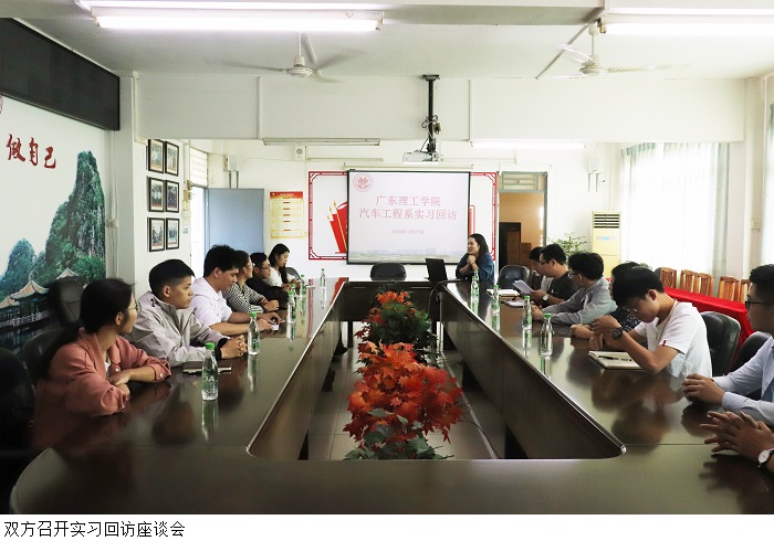 汽车工程系党总支钟兆天书记与汽车工程系谢娟烘副主任表示,实习回访是为了更好的了解实习学生的就业实习情况。同时询问了实习学生的工作情况、薪资待遇、生活食宿等情况,勉励同学们在今后的工作中要遵守师德,踏实工作,不要好高骛远。在交谈期间,钟兆天书记与贺主任及在座的老师们根据实习情况对学院人才培育教学改进等方面展开探讨。