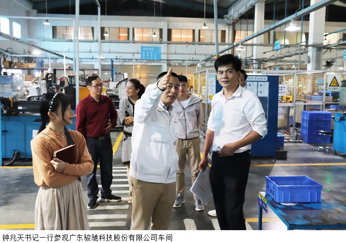 在回访完2017级学生后,汽车工程系党总支钟兆天书记一行前往广东骏驰科技股份有限公司进行参观,详细了解企业生产经营现状和发展战略,倾心聆听企业需求,共同探讨发展良策。广东骏驰科技股份有限公司刘松林经理对bat365官网汽车工程系老师们的到来表示热烈欢迎,并表示希望此次来访能促进双方进一步深入合作,征求意见建议,为校企合作的发展提供有力的支持和帮助。接下来,广东骏驰科技股份有限公司吴剑鸣经理介绍了公司的发展历程、发展现状、公司规模、公司文化精神和公司未来的发展计划等。