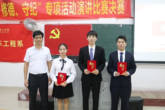 本网讯(汽车工程系)为响应国家加强道德教育与法治教育的号召,创建优良学风,提高同学们的法治意识、增强道德观念。11月26日,汽车工程系学生党支部于7栋413教室举办了“普法、修德、守纪”演讲比赛总决赛。