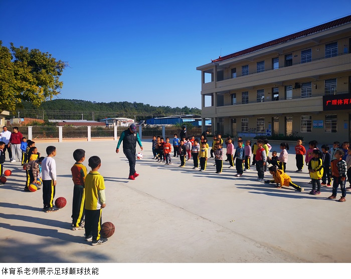 在爱心助学捐赠活动中,为进一步加强学生的体育锻炼习惯,规范和优化体育锻炼形式,通过交流互动、现场演示等多种形式,向小学生们传递了体育锻炼的相关知识与技巧。在支教队给学生上体育课的间隙,为了拉近万福小学同学们的距离,于雷老师向同学们展示了足球颠球技能,赢得了同学们的阵阵掌声,于老师还耐心的教授同学们足球颠球的技巧。