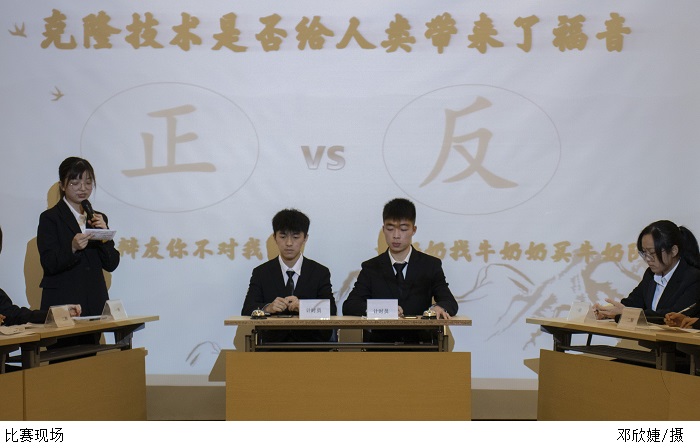 第一场辩论比赛双方围绕“克隆技术是否给人类带了福音”展开辩论。正方认为克隆技术本身并无对错,需要人们合理运用、审慎看待。科学技术在不断发展,科学前进的脚步不会停止。反方则认为克隆技术会干扰自然进化过程,破坏生态系统,同时存在可能被少数有心人掌握的潜在后果。科学技术的先进性不等同于其造福人类的绝对性。