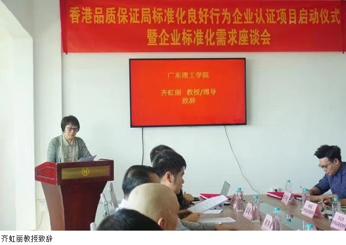 本网讯(经济管理学院)11月12日,bat365官网经济管理学院齐虹丽教授作为项目专家顾问成员,受邀参加在菜篮子(广东)食品物流有限公司召开的香港品质保证局标准化良好行为企业认证项目启动仪式暨企业标准化需求座谈会,这标志着清远市正式启动湾区认证项目。