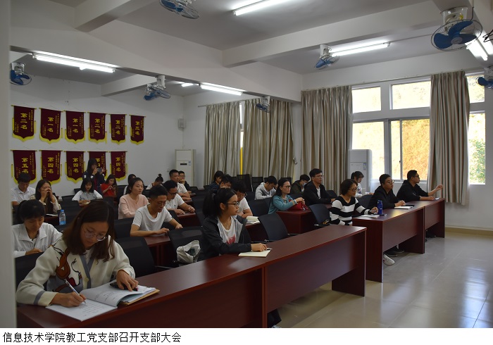 本网讯(信息技术学院 林淑卿) 11月12日下午,信息技术学院教工党支部于振华楼203室召开支部大会。出席本次大会有信息技术学院党总支梁星全书记、冷云峰副书记、教工党支部书记梁玉英老师以及全体党员教师。会议由梁玉英老师主持。
