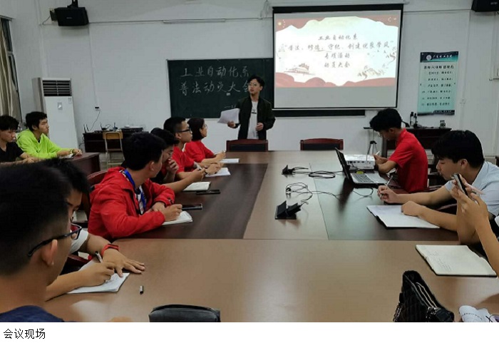 本网讯(工业系)为认真学习贯彻党的十九大精神,坚持和落实“依法治校,以德治校”的工作,10月22日下午,工业系于9栋304会议室召开“普法、修德、守纪、创建优良学风”专项活动动员会议。本次会议由工业系学生党支部书记陈钦腾老师主持,全体辅导员、19级学生党支部干部、20级助理班主任以及20级各班负责人参加。