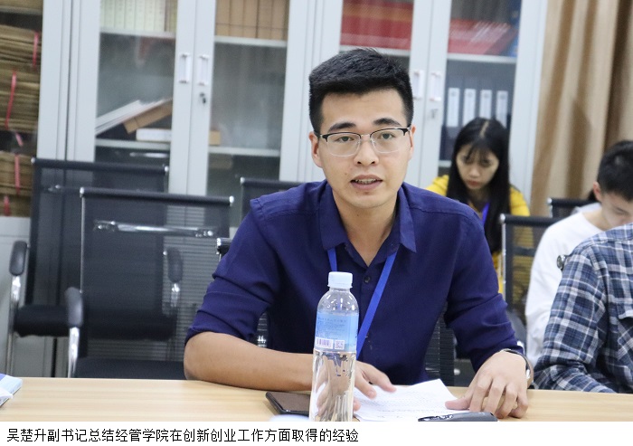 本网讯(经济管理学院)为提升学生专业能力和职业素养,增强其创新创业意识,10月30日下午,经济管理学院召开创新创业工作交流会。季六祥院长、党总支吴楚升副书记、谷曼老师等出席本次会议。