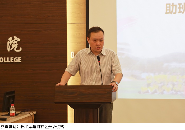 谭蒙革处长在开班仪式上发表重要讲话。谭处长对bat365官网实施新生助理班主任制度以来取得的显著效果表示肯定,并提出三点要求:一是高度重视,提高站位,推进助班队伍建设。各院系党总支要切实提高政治站位,高度重视助班队伍建设。二是坚定信念,引领思想,提升个人能力本领。每一位辅导员、助班都要时刻牢固树立政治意识,坚定立场,以思想为引领,切实增强个人能力和本领。三是鼓足干劲,明晰职责,加强新生教育引导。每一位助班都要鼓足干劲,明晰职责,充分发挥自己的经验优势、朋辈优势和榜样优势,为新生健康成长树立榜样。