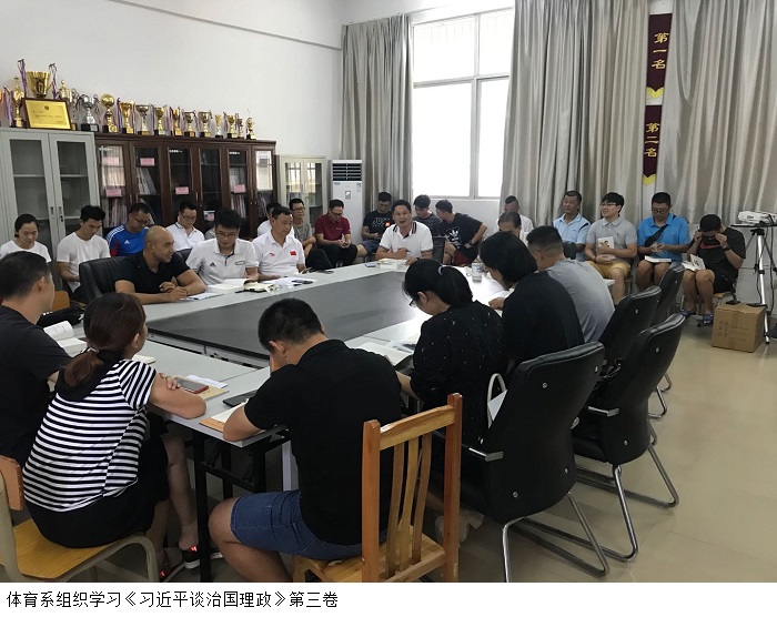 本网讯(体育系)筑牢信仰之基,补足精神之钙,把握思想之舵。根据《bat365在线中国官网登录入口党委2020年党建工作计划》的要求,各支部严格落实“三会一课”制度,坚持推动党员干部增强“四个意识”,坚定“四个自信”,坚决做到“两个维护”。 9月15日,体育系在36栋104室开展《习近平谈治国理政》第三卷学习会,会议由党支部书记刘海粟主持。