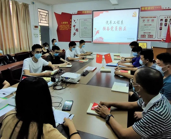 本网讯(汽车工程系)为了进一步吸纳新一批的优秀共产党员,汽车工程系于2020年7月1日在7303召开“汽车工程系预备党员转正讨论大会”。