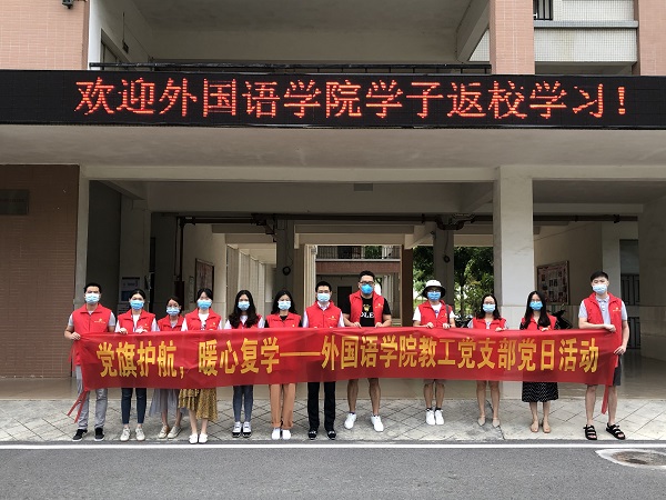 本网讯(外国语学院)5月29日到31日,为配合学校和学院做好学生返校工作,外国语学院教工党支部开展了“党旗护航,暖心复学”党日活动。