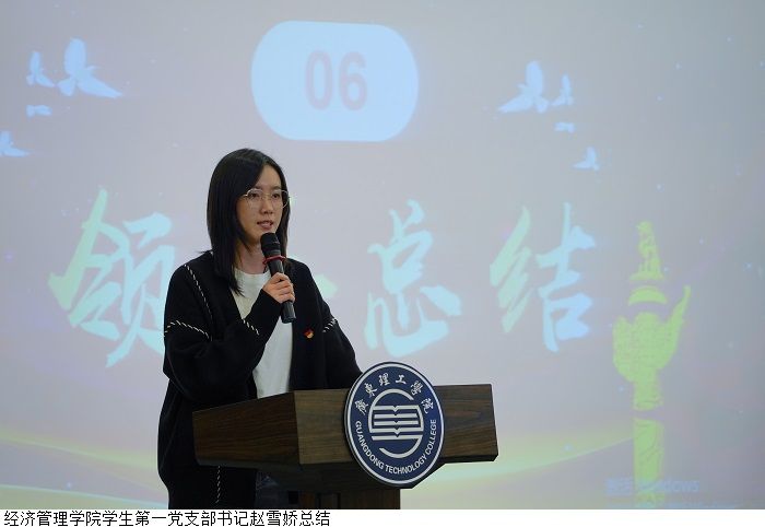 经济管理学院第一党支部书记赵雪娇总结时强调,要明辨是非、崇礼守法,树立守法观念和法律信仰,自觉明大德、守公德、严私德,提高道德实践能力,努力做到讲道德、尊道德、守道德,营造向上向善校园氛围。