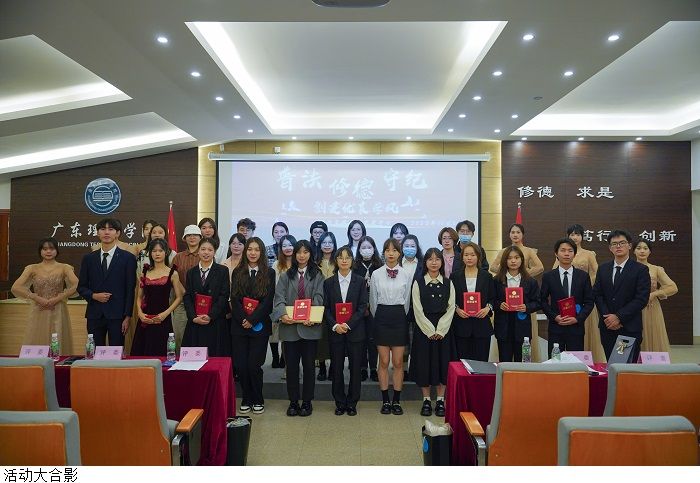 活动伊始,全体起立,奏唱国歌。随后,经济管理学院党总支书记甘怀南指出,遵纪守法是每个公民应尽的义务,要不断增强自身学法、懂法、守法意识,自觉成为“学法懂法、学德修德、学纪守纪”的宣讲人,将“普法、修德、守纪”要求践行到日常生活中,积极投身学风建设。他强调,习近平总书记在党的二十大报告中寄语广大青年:“广大青年要坚定不移听党话、跟党走,怀抱梦想又脚踏实地,敢想敢为又善作善成,立志做有理想、敢担当、能吃苦、肯奋斗的新时代好青年,让青春在全面建设社会主义现代化国家的火热实践中绽放绚丽之花”,希望同学们内化于心、外化于行,勇于担当、力学笃行。