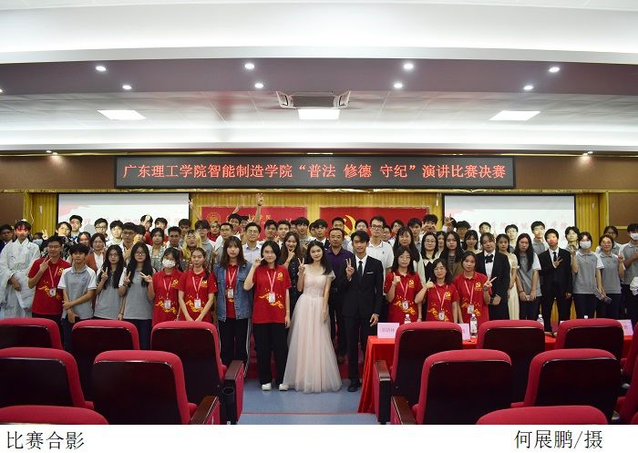本网讯(智能制造学院学生党支部 潘钰静 袁振飞)为深入学习贯彻习近平总书记法治思想,做好八五法治宣传教育工作,进一步提升学生法治素养和宣传中国特色社会主义法律体系,智能制造学院于11月15日在42栋101举行“普法、修德、守纪,创建优良学风”演讲比赛决赛。智能制造学院党总支彭清林书记、副院长黎志勇及全体辅导员出席本次比赛。