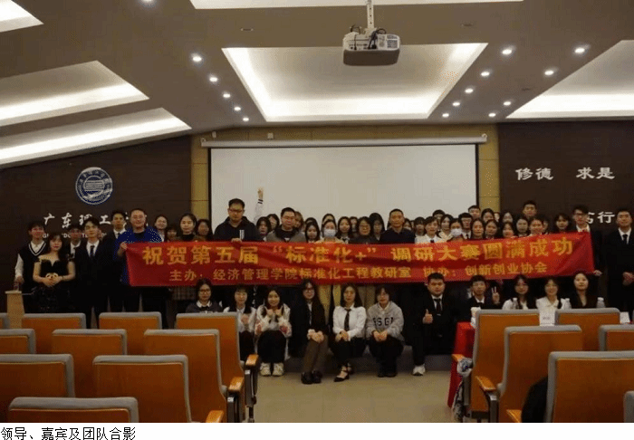 本网讯(经济管理学院)2月28日下午14:30,bat365在线中国官网登录入口第五届“标准化+”调研大赛决赛在鼎湖校区行政楼三楼学术报告厅顺利举行。出席比赛的领导及嘉宾有:电气与电子工程学院副院长倪元相,经济管理学院副院长魏嫚、标准化工程教研室学科带头人齐虹丽教授、教研室主任陈晓黎,物流教研室主任黄永福以及标准化工程教研室全体教师和参赛团队。