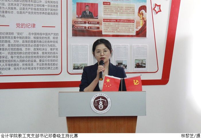 本网讯(会计学院学生党支部先锋队 张颖)为深入学习宣传贯彻党的二十大精神,教育引导广大党员教师踔厉奋发、勇毅前行,切实把思想和行动统一到党的二十大精神上来,落实立德树人的根本任务,2023年3月21日下午14点30分会计学院教工党支部在高要校区7栋303党员活动室举行了以“立德树人践初心、培根铸魂育新人”为主题微党课比赛。学校组织部部长廖振宇、师资处处长赵宇宏、学生处处长谭蒙革出席本次比赛并担任评委,会计学院党总支书记黎伯毅、教工党支部书记郑春晓、部分党员教师及学生党员代表到现场观看比赛。