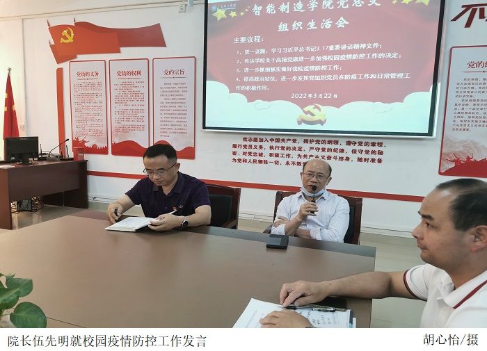 本网讯(智能制造学院 但志慧)为进一步学习习近平总书记在中共中央政治局常务委员会会议上的重要讲话精神,智能制造学院于3月22日召开党总支组织生活会,院长伍先明,副院长谢娟烘、黎志勇,党总支副书记苏庚华及全体党员教师参会,会议由党总支书记彭清林主持。