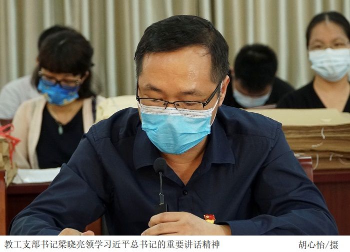 学院教工支部书记梁晓亮领学习近平总书记在中共中央政治局常务委员会会议上的重要讲话精神,并谈了自己的学习心得体会。他表示,做好疫情防控关系到校园公共安全和师生生命健康,是完成教学工作的前提和基础,校园疫情防控工作重要且艰巨,作为教工党支部书记以及教师代表,将在接下来的日常教学工作中,积极配合学校的疫情防控工作,完成教学工作的同时,继续做好疫情防护知识宣传。