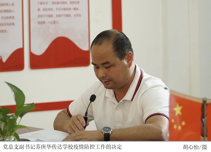 苏庚华传达了《bat365在线中国官网登录入口党委关于高扬党旗进一步加强校园疫情防控工作的决定》,表示院系师生要高度重视疫情防控工作,服从管理,配合各项工作的开展,充分发挥党员师生的先锋模范作用,切实保障广大师生身体健康和生命安全,维护校园正常秩序和稳定安全。