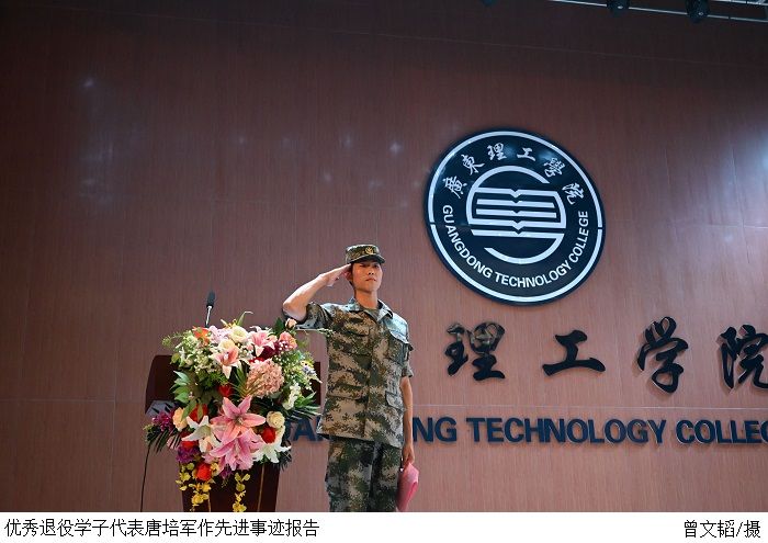 随后,学校优秀退役学子代表唐培军、付莎莎作先进事迹报告,他们回忆了从校门走向营房,从学子成为战士,戎装在身护国安的峥嵘岁月,饱含深情地表达少年正值风华正茂,青春当以报效国家的鸿鹄壮志。他们尽展赤子心,尽抒报国志,彰显了吾辈文可提笔安天下,武能策马卫边疆,不爱红装爱武装的青春榜样形象。