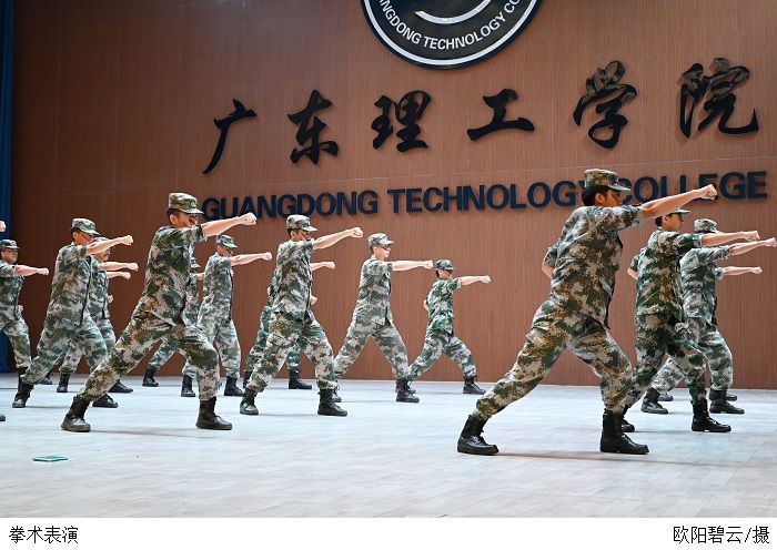 首先由bat365官网军政教导队进行退役学子风貌展示,以声震天威的歌声唱出铁血男儿的豪情壮志,以气壮山河的拳术表演展现刚硬战士的飒爽英姿,让学生真切感受了强军风采点燃了青年学子戎装从军梦。