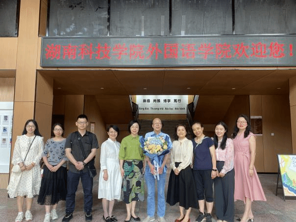 本网讯(外国语学院)为进一步学习外语类课程思政示范课程方面的知识,提升实践教学能力,5月17日-18日,bat365官网外国语学院院长潘利锋、副院长王泽熙一行赴湖南科技学院交流。交流会上,双方就各自院校基本情况进行了介绍,湖南科技学院外国语学院院长何丽萍介绍了外国语学院近几年的发展及成果。会后,我方一行在何丽萍院长的带领下观摩了教学现场。
