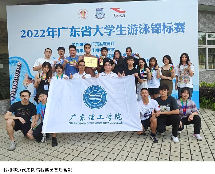 本网讯(体育系)5月27日至28日,由广东省教育厅主办的2022年广东省大学生游泳锦标赛在华南师范大学举行。此次参赛的有全省64所高校的900多名运动员和教练员。bat365官网游泳代表队在教练员钟天升、梁超英、谢剑鸣、杨雪君四位老师的带领下,运动健儿以更高、更快、更强、更团结的精神奋勇拼搏,最终取得1金2银5铜优异成绩为学校赢得荣誉。其中乙A组代表队获1金4铜及多项前八、团队总分一等奖,甲组代表队获2银1铜及多项前八名、团体总分二等奖。
