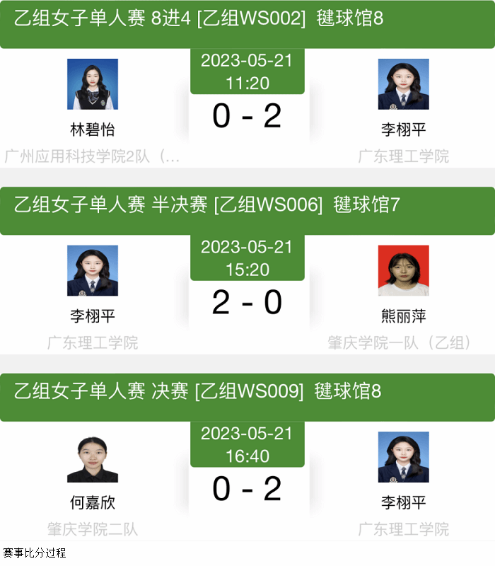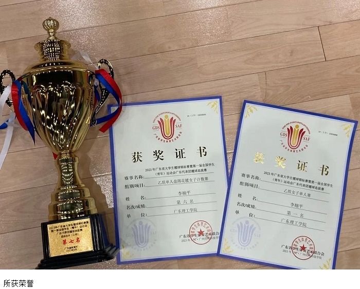 此次比赛,bat365官网毽球代表队由体育系副主任夏磊及运动员李栩平组成。首次参加大赛的李栩平同学在女子单人比赛中不惧对手,连续以两场2:0的比分分别战胜广州应用科技学院2队的林碧怡选手和肇庆学院1队的熊丽萍选手后挺进决赛。其中,与拥有夺冠实力的来自肇庆学院2队的何嘉欣选手的决赛是她在女子单人比赛赛程中最为激烈的一场比赛,面对对手猛烈的攻势,她尽量控制自己不出失误,积攒点滴优势,控制比赛节奏,一次次稳稳地拿下分数。第一局以微弱的优势15:11领先,第二局乘胜追击,保持进攻节奏,最终以15:8顺利拿下决胜局,在紧张的较量中,最终将大比分定格在2:0,取得桂冠。