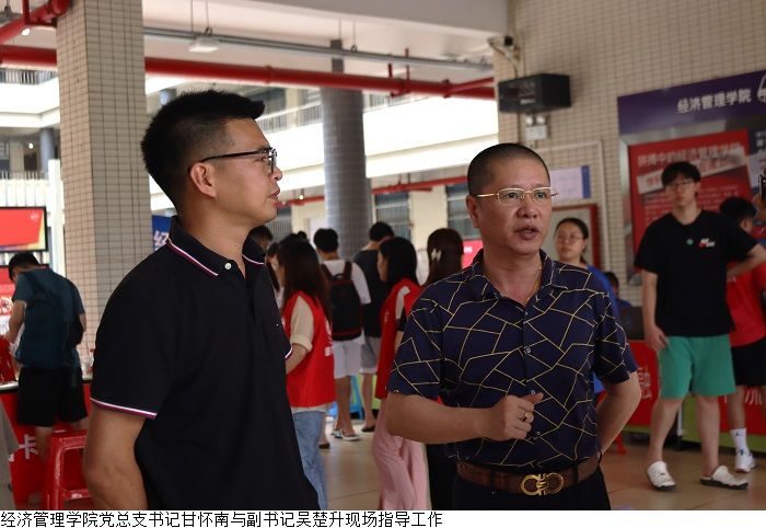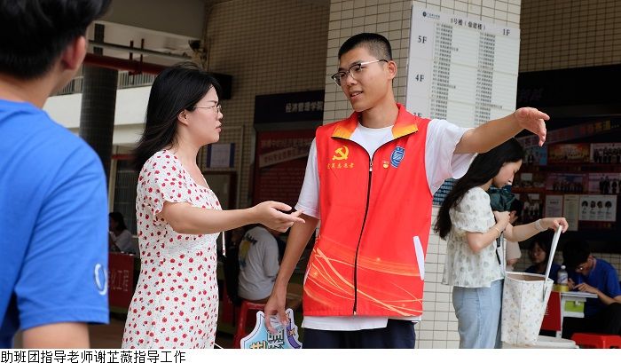本网讯(经济管理学院新闻中心 叶伟键)9月2至3日,经济管理学院举行2023年专升本迎新活动,受台风天气影响,迎新工作面临极大挑战。bat365在线中国官网登录入口党委副书记黎会友、经济管理学院党总支书记甘怀南,副书记吴楚升、学工部部长魏甫龙、助班团指导老师谢芷薇及部分新生辅导员老师到现场指导迎新工作,确保雨天迎新工作顺利开展。