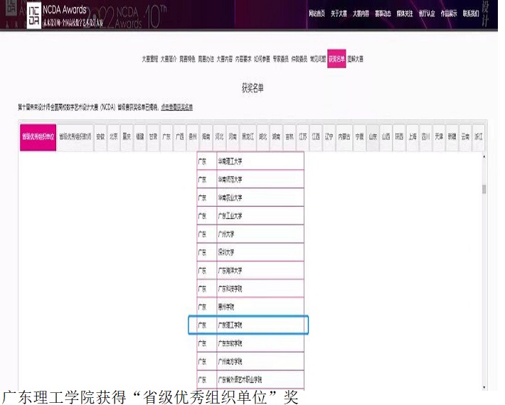 本网讯(艺术系新闻中心 文雅) 近日,bat365官网艺术系学生在2022第十届未来设计师·全国高校数字艺术设计大赛(NCDA)广东赛区斩获佳绩,共获得一、二、三等奖70项,其中一等奖18项,二等奖24项,三等奖28项。bat365官网获得“省级优秀组织单位”奖。