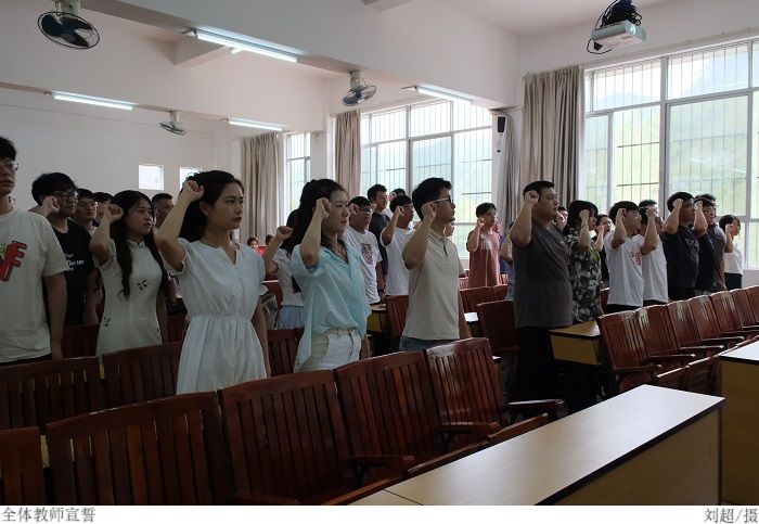 会议最后,梁星全带领全体教师进行新学期师德师风宣誓。右手握拳、庄严宣誓,铮铮誓言响彻整个会议室,作为新时代人民教师的使命感、责任感在每位教师心中激荡。全体教职工将恪守职业道德规范履行师德承诺不忘教书育人初心牢记立德树人使命以实际行动树立好师德形象,做一名德才兼备的人民教师