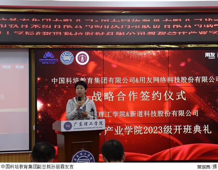 接着,盛洁作开班致辞。她回顾了过去两年里,产业学院与新道科技在新型人才培养模式下取得的丰硕成果,并对这期间新道科技所给予的指导和帮助表示衷心感谢。她期待校企双方在未来以“双主体”育人为共同目标,继续加强沟通,深化合作,最终实现共赢。