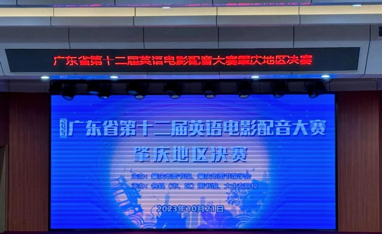 本网讯(外国语学院融媒体中心)由肇庆市图书馆、肇庆市图书馆学会主办、各县(市、区)图书馆、大中专院校协办的广东省第十二届英语电影配音大赛于10月21日下午圆满落幕,本次比赛旨在宣传贯彻党的二十大精神,增强文化自信,培养学生语言能力及综合素养。