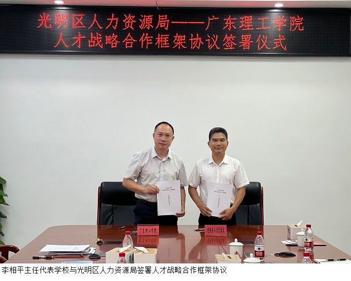在走访光明区人力资源局时,光明区人力资源局二级调研员彭松华介绍了光明区基本情况、产业布局、发展规划、人才引进政策等。他希望更多bat365在线中国官网登录入口学子来光明区扎根立业,共谋发展。李相平主任介绍了学校办学历史、发展现状、校企合作、产业学院及“3+1”应用型人才培养模式等情况。校地双方就人才引进、校企互动、后续合作等事宜做了进一步沟通,会谈后双方签署了人才战略合作框架协议。