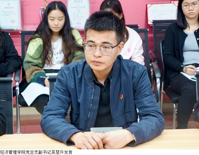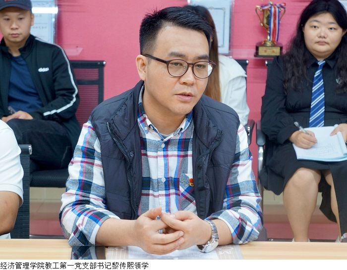 本网讯(经济管理学院 张文杰 谢夏媛)为推动学习贯彻习近平新时代中国特色社会主义思想主题教育走深走实,引导教工党员自觉加强党性锻炼,提高思想觉悟,扎实推进学院建设,经济管理学院教工第一党支部于11月22日在4103开展主题教育专题学习会。经济管理学院党总支书记甘怀南、副书记吴楚升及全体教工党员出席会议,教工第一党支部书记黎传熙主持会议。